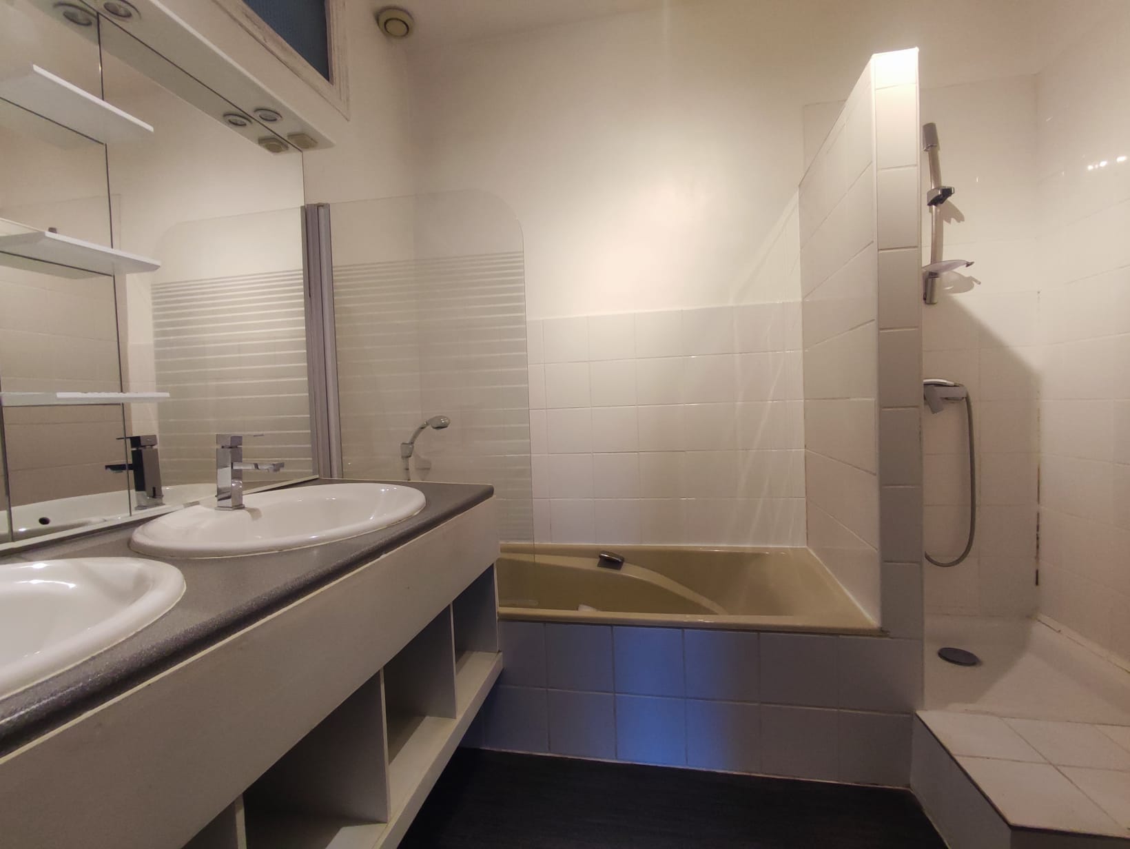 commercial. un WC, salle de bain , douche, baignoire, double vasque, grand